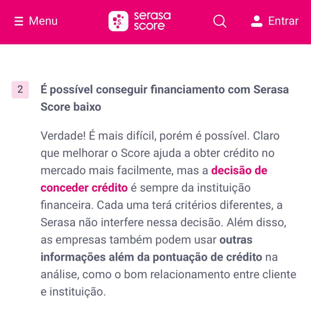O que importa é o rating interno, não o score do Serasa.